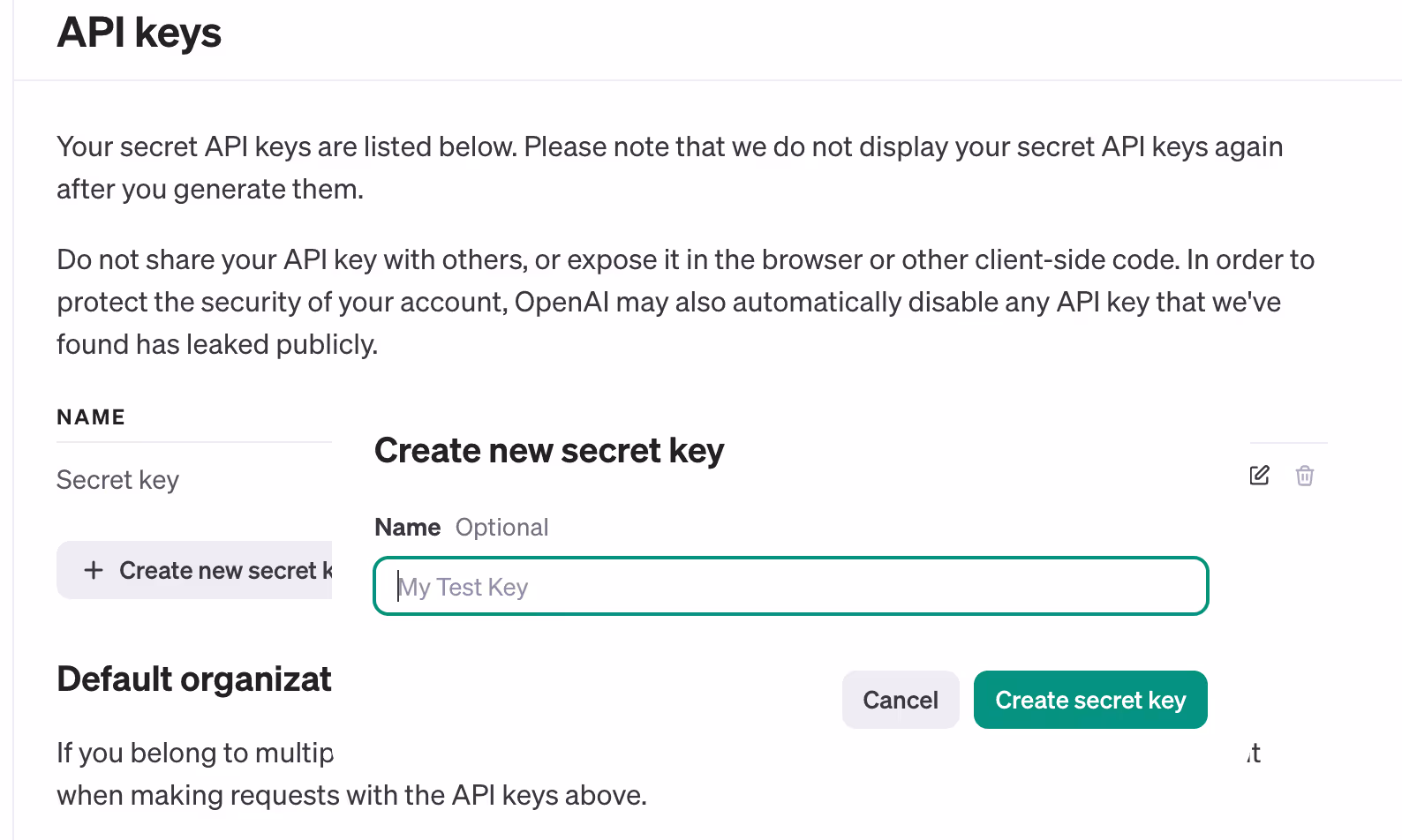 - Open AI key generation flow.