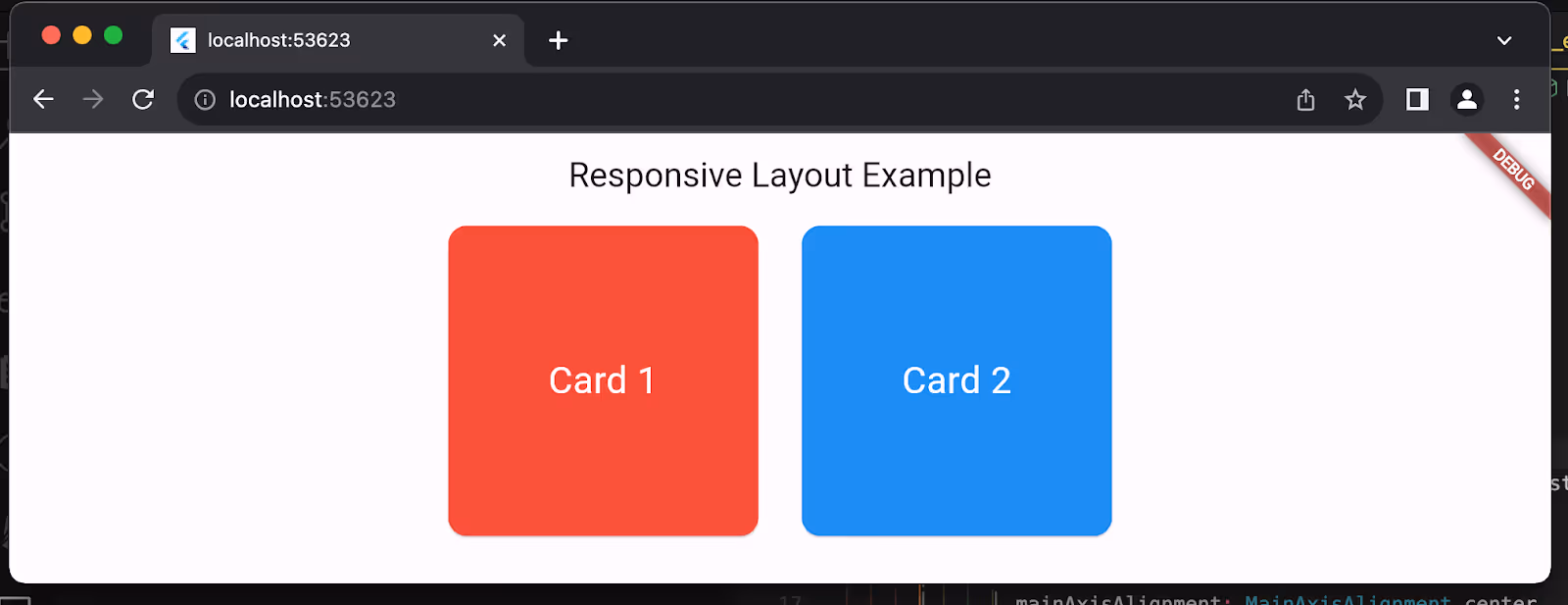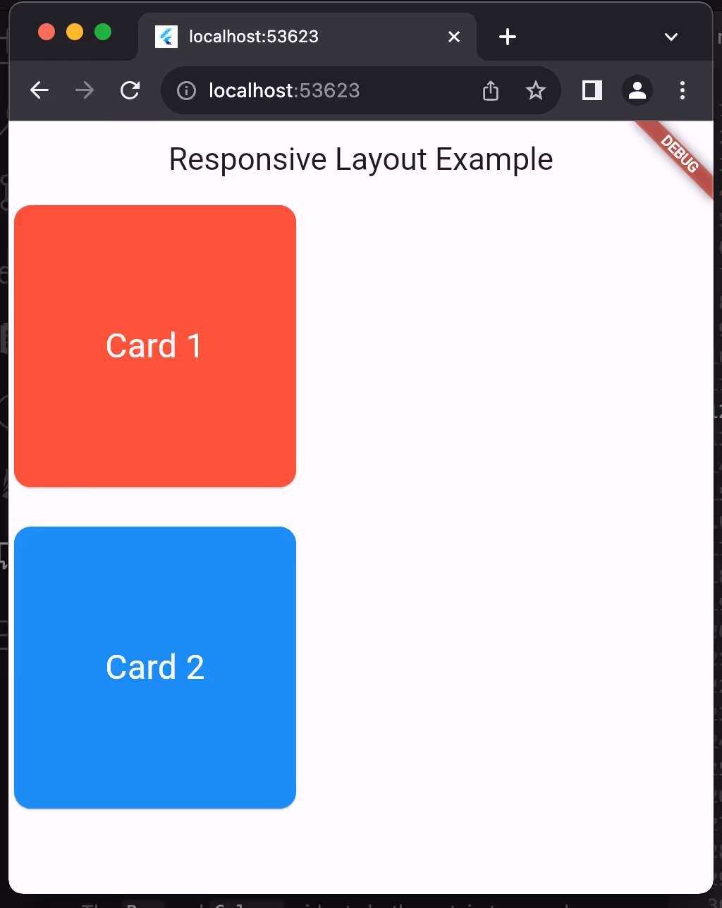 This example adapts the layout based on the screen width. If the screen width is greater than 600, it displays two cards side by side(card 1 and card 2).