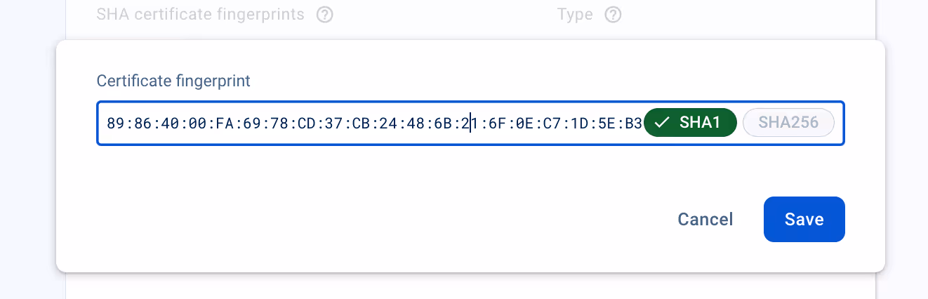 Now goto your project settings, and paste the SHA key by selecting your android project, You can add both keys SHA-1 and SHA-256.