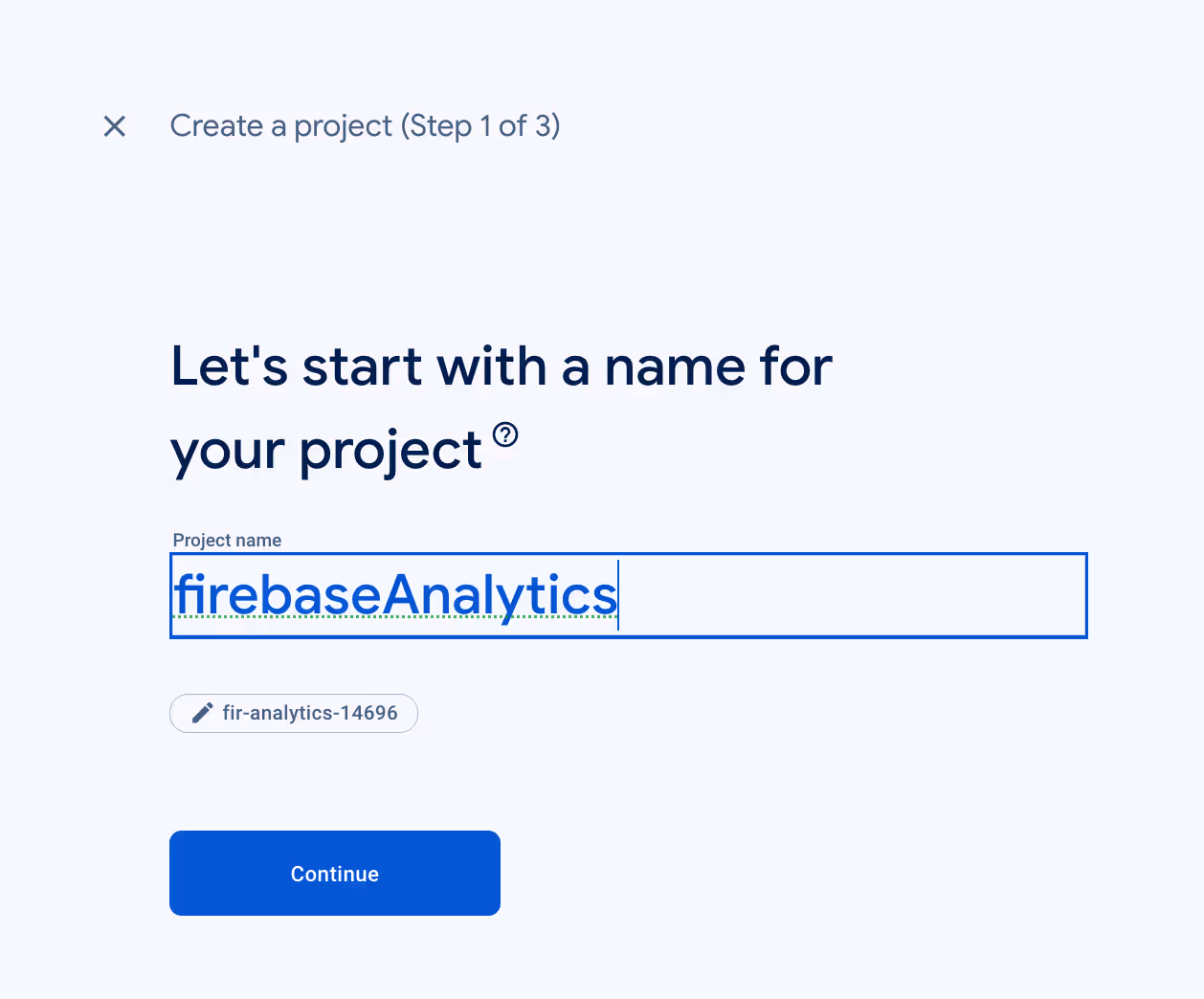 flutter create firebase_analytics_example , This will create a project for you, Now follow the rest of the instructions.