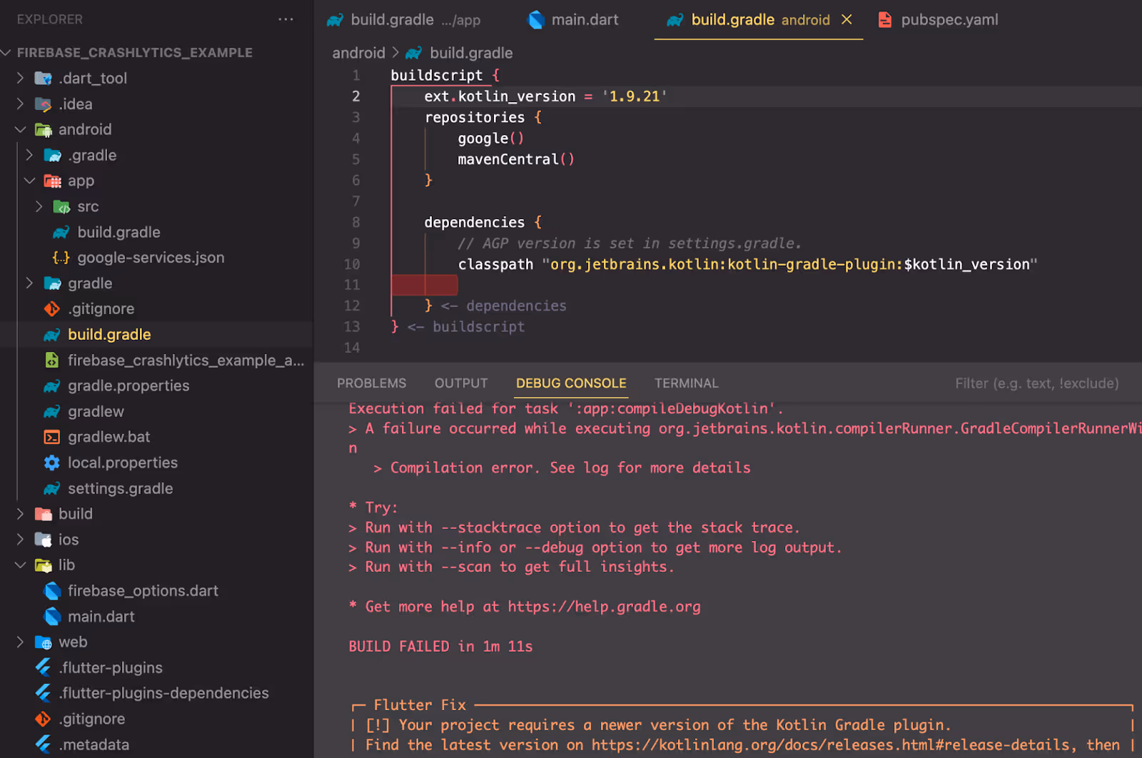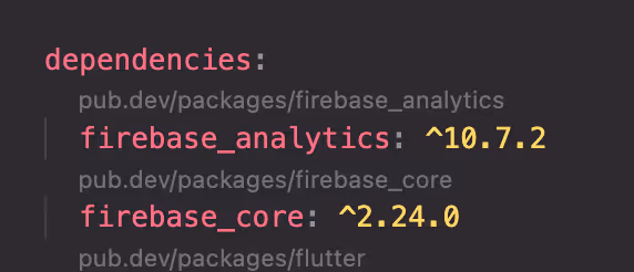 This will add firebase_analytics and firebase_core packages to your ’pubspec.yaml’ file