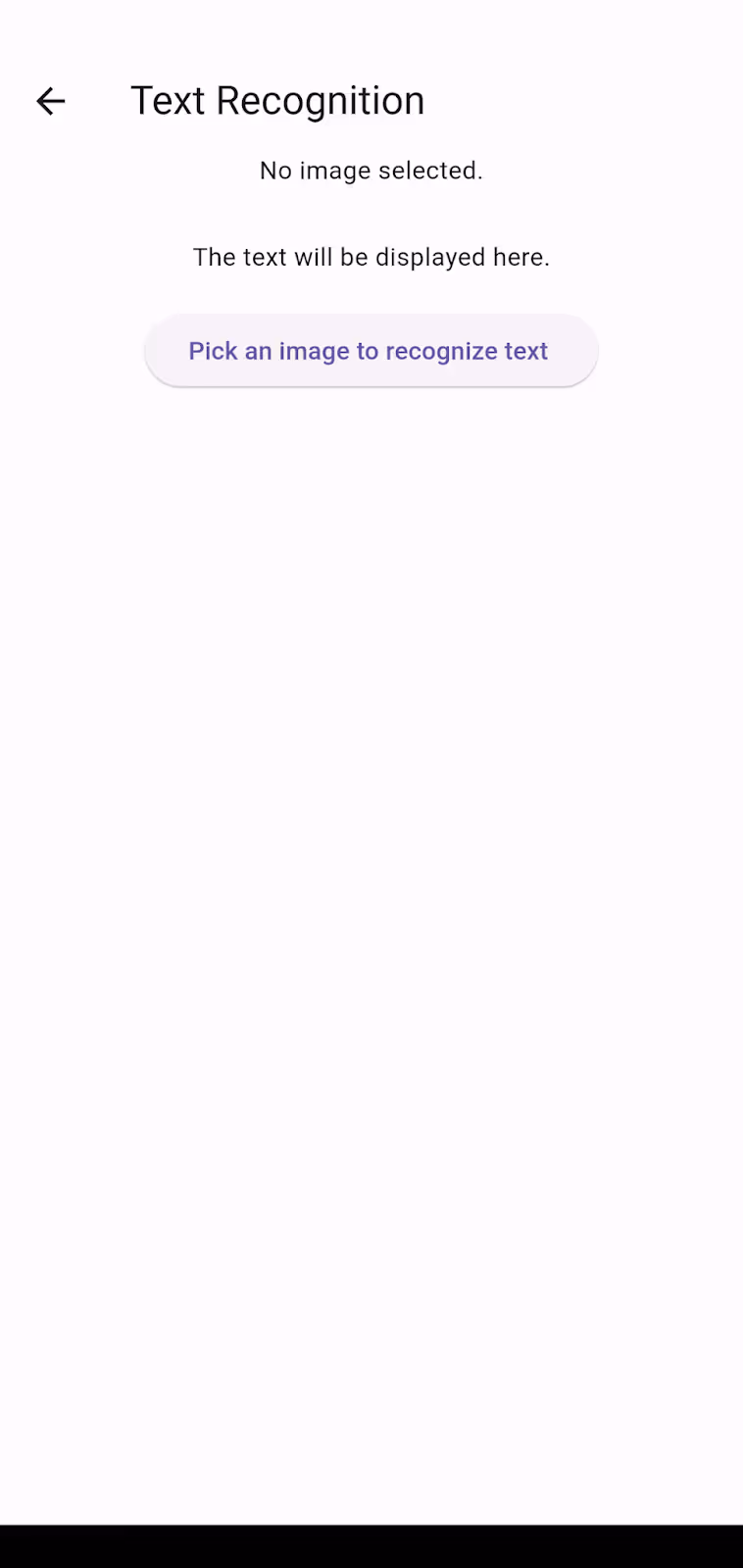 In this code, we created a UI and defined a functon for text recognition, where it recognizes text in an image selected from the gallery of the user’s device.